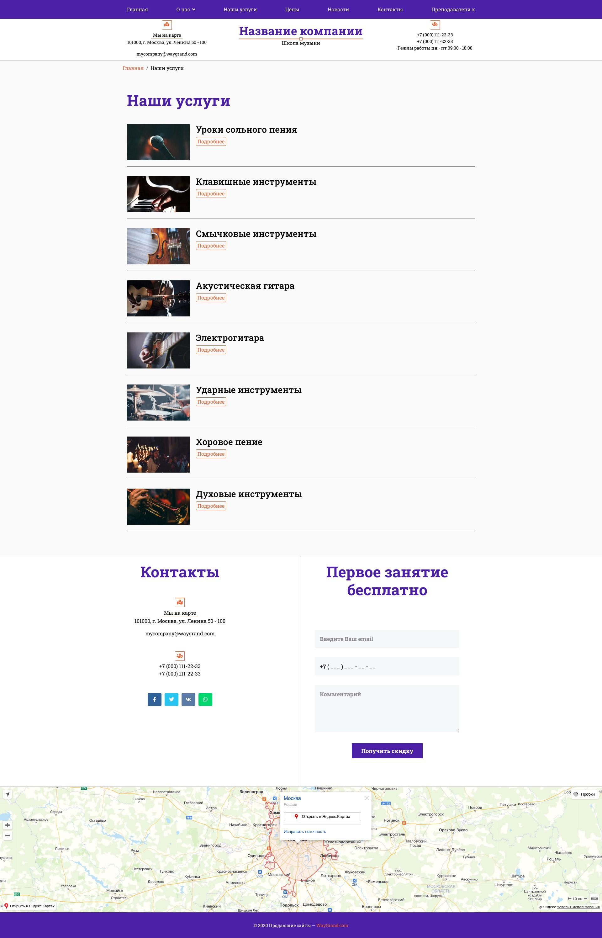 Закажите готовый продающий сайт визитка #1431301 в Челябинске за 5-7 дня «под ключ»: свёрстан, отрисован и готов к рекламе. Тематика шаблона «Школа музыки».