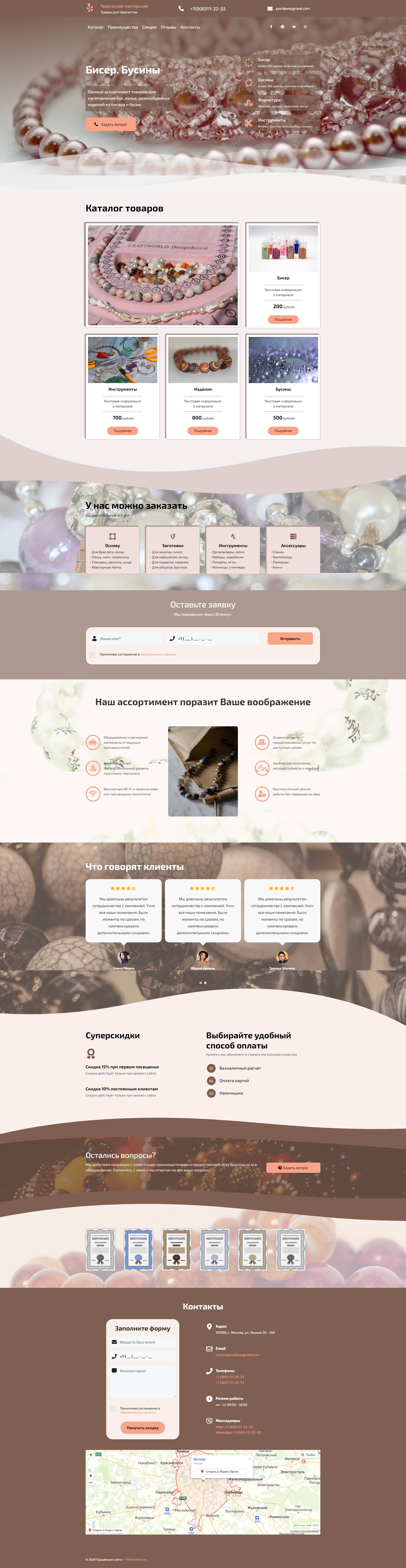 Закажите готовый продающий сайт лендинг #2429201 в Челябинске за 1-3 дня «под ключ»: свёрстан, отрисован и готов к рекламе. Тематика шаблона «Товары для украшений».