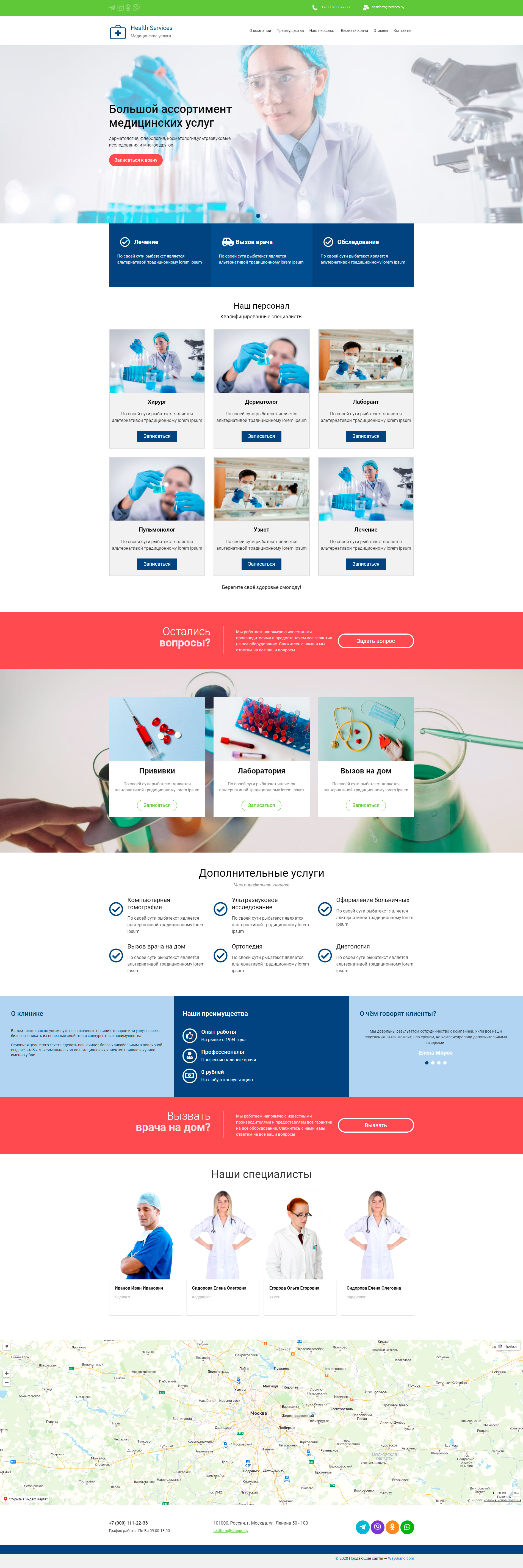 - Блоки "Услуги", "наши преимущества", "О чём говорят клиенты"