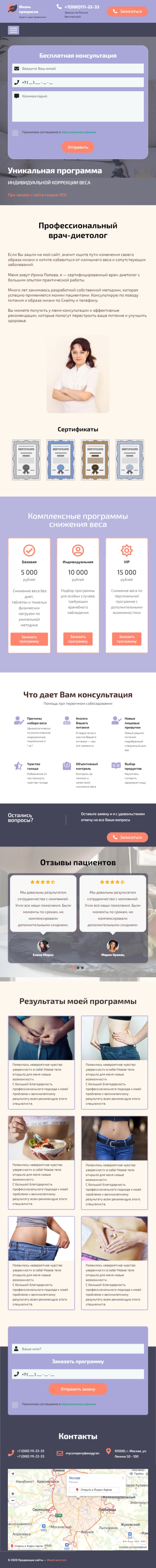 Закажите готовый продающий сайт лендинг #1094201 в Челябинске за 1-3 дня «под ключ»: свёрстан, отрисован и готов к рекламе. Тематика шаблона «Врач-диетолог (похудение)».