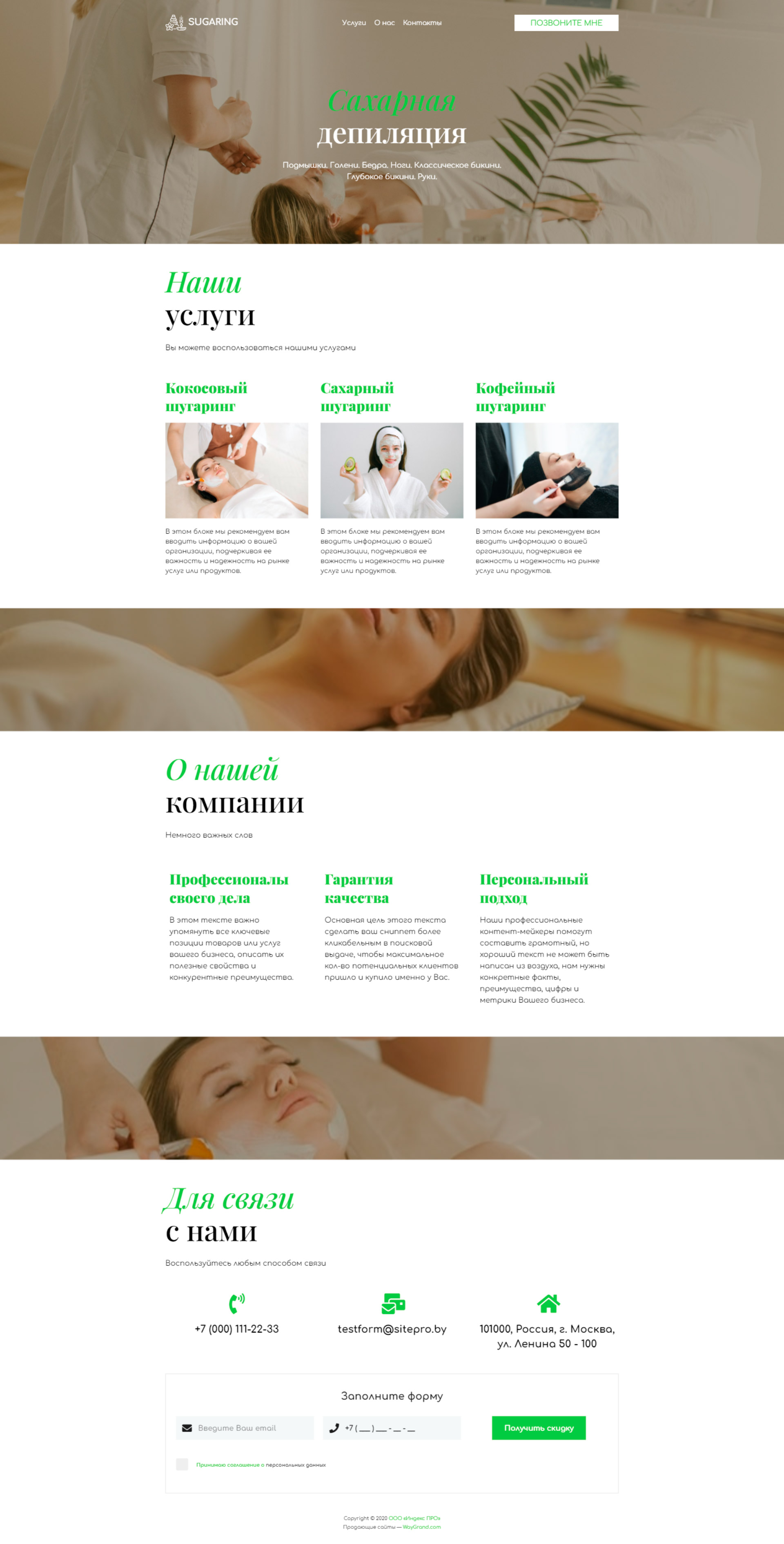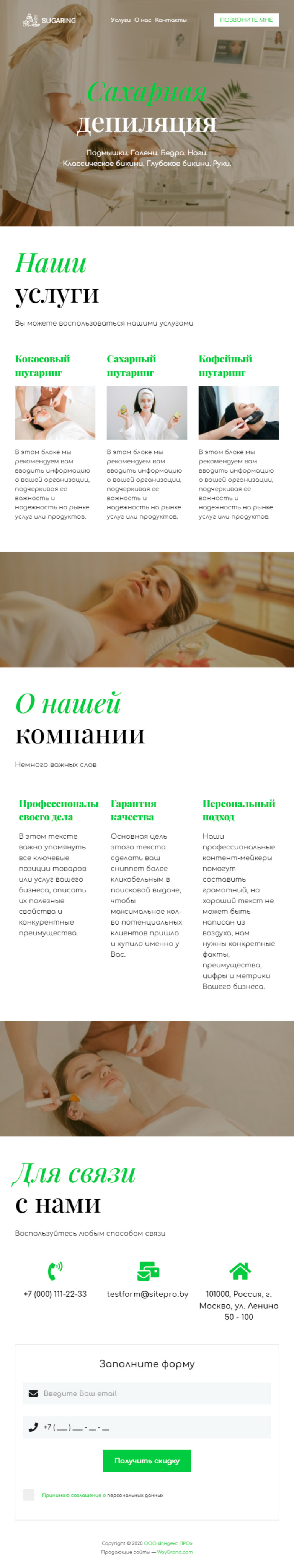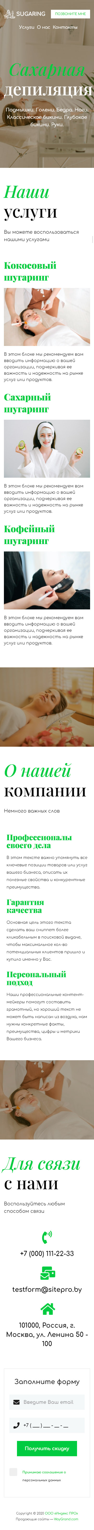 Закажите готовый продающий сайт визитка #1105101 в Челябинске за 5-7 дня «под ключ»: свёрстан, отрисован и готов к рекламе. Тематика шаблона «Сахарная депиляция/Шугаринг».