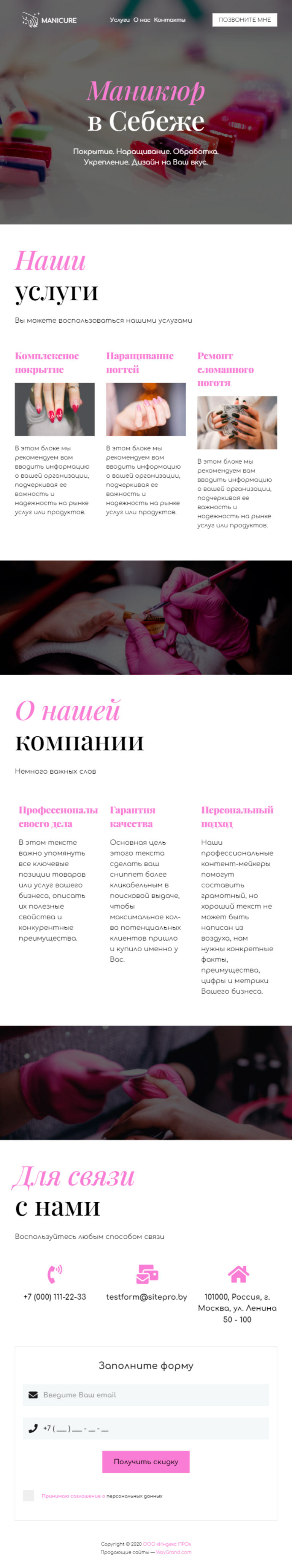Закажите готовый продающий сайт визитка #1107102 в Челябинске за 5-7 дня «под ключ»: свёрстан, отрисован и готов к рекламе. Тематика шаблона «Маникюр в Себеже».