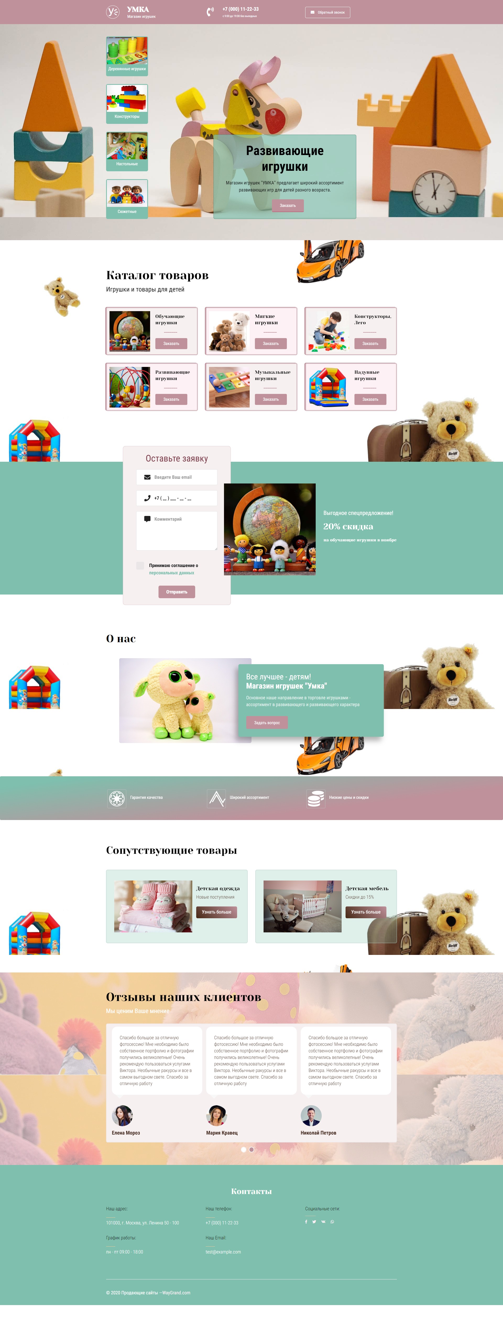 Закажите готовый продающий сайт лендинг #2442201 в Челябинске за 1-3 дня «под ключ»: свёрстан, отрисован и готов к рекламе. Тематика шаблона «Магазин игрушек».