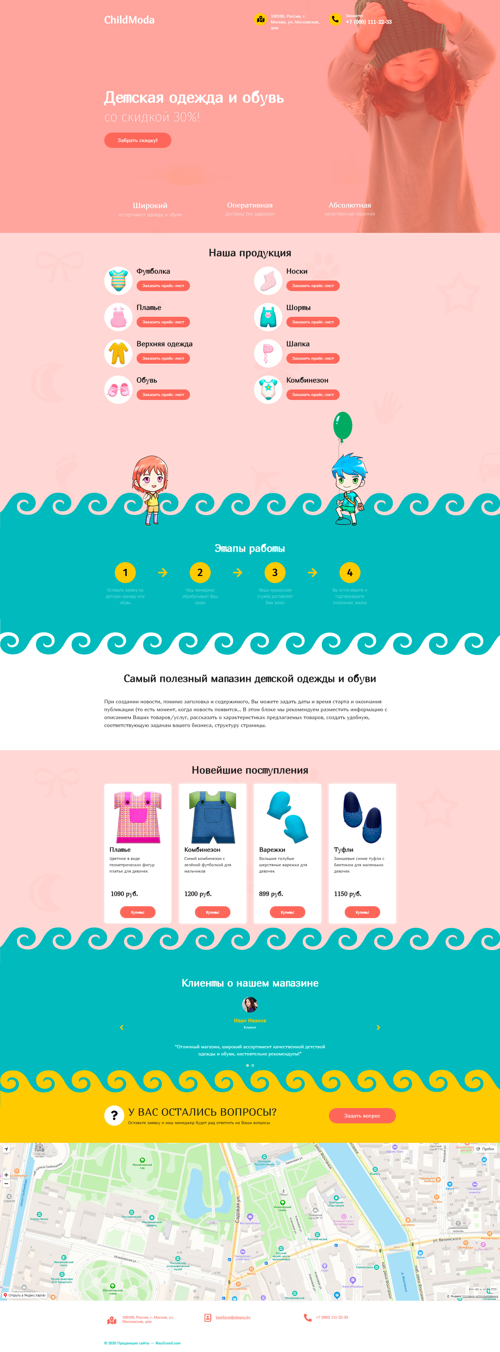 Закажите готовый продающий сайт лендинг #1506201 в Челябинске за 1-3 дня «под ключ»: свёрстан, отрисован и готов к рекламе. Тематика шаблона «Детская одежда и обувь».