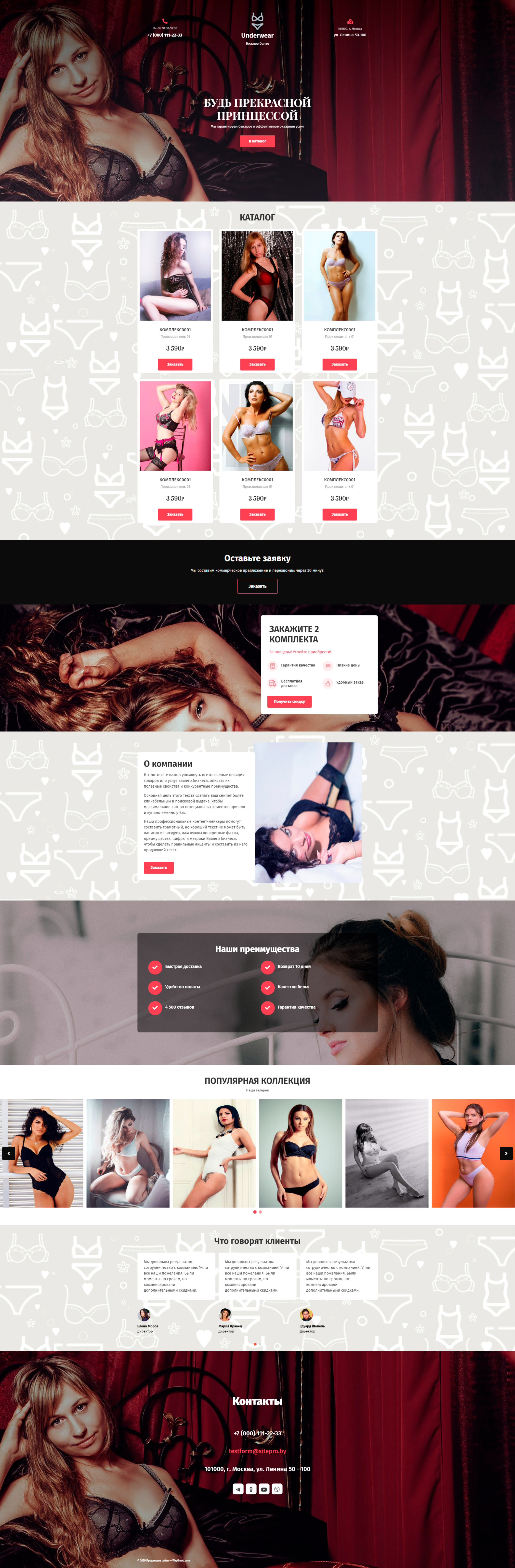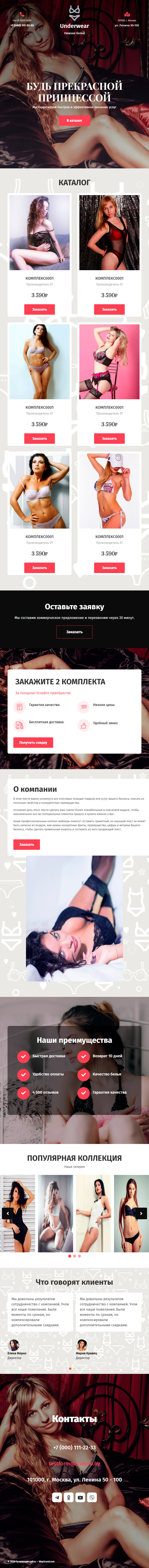 Закажите готовый продающий сайт лендинг #1514201 в Челябинске за 1-3 дня «под ключ»: свёрстан, отрисован и готов к рекламе. Тематика шаблона «Нижнее белье».