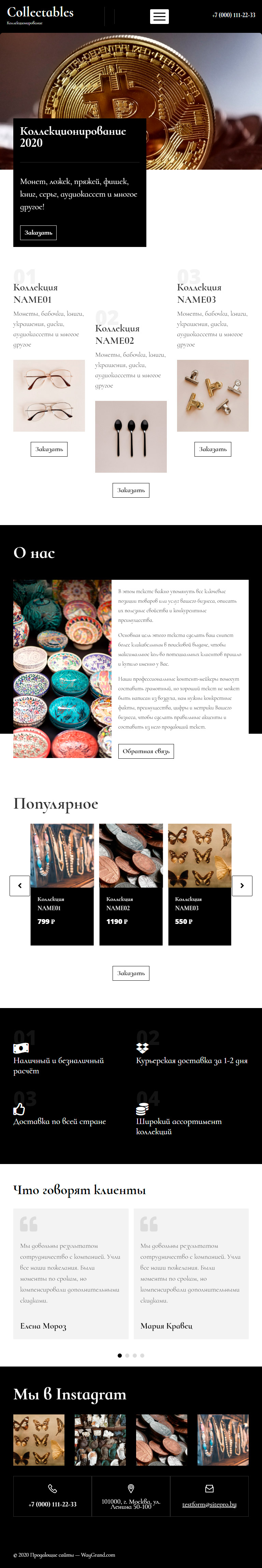 Закажите готовый продающий сайт лендинг #0801201 в Челябинске за 1-3 дня «под ключ»: свёрстан, отрисован и готов к рекламе. Тематика шаблона «Коллекционирование».