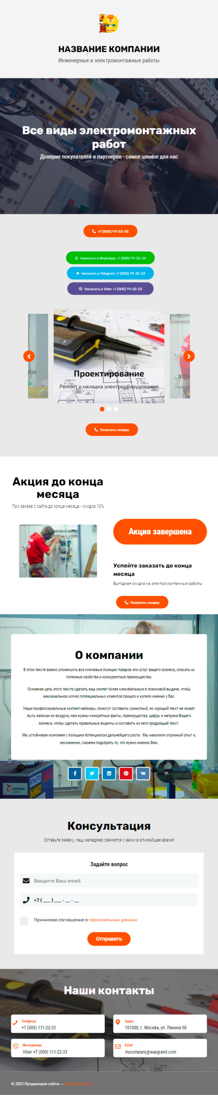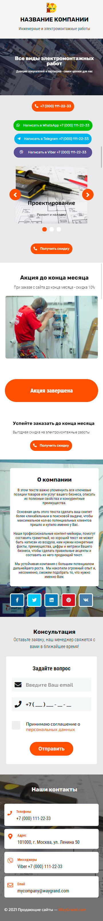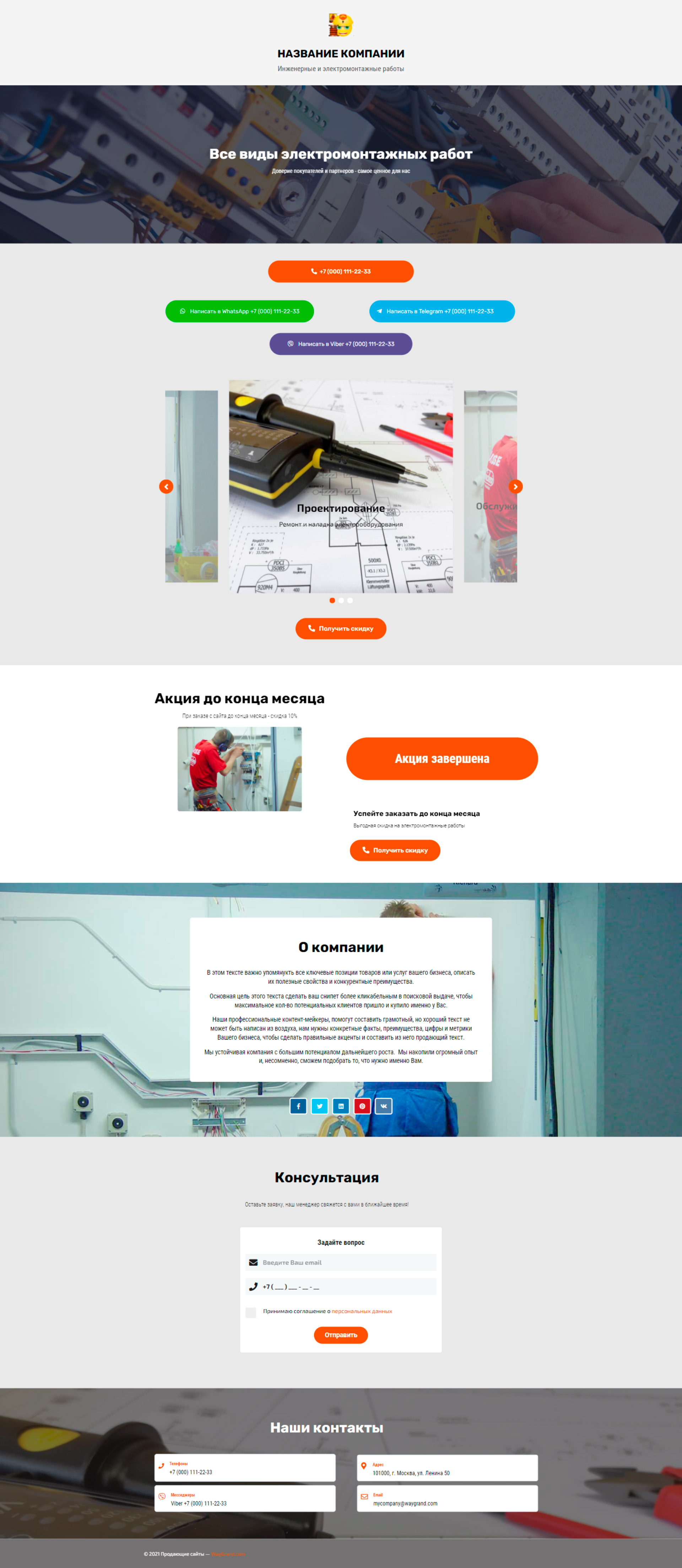 Закажите готовый продающий сайт визитка #2189101 в Челябинске за 5-7 дня «под ключ»: свёрстан, отрисован и готов к рекламе. Тематика шаблона «Инженерные и электромонтажные работы».