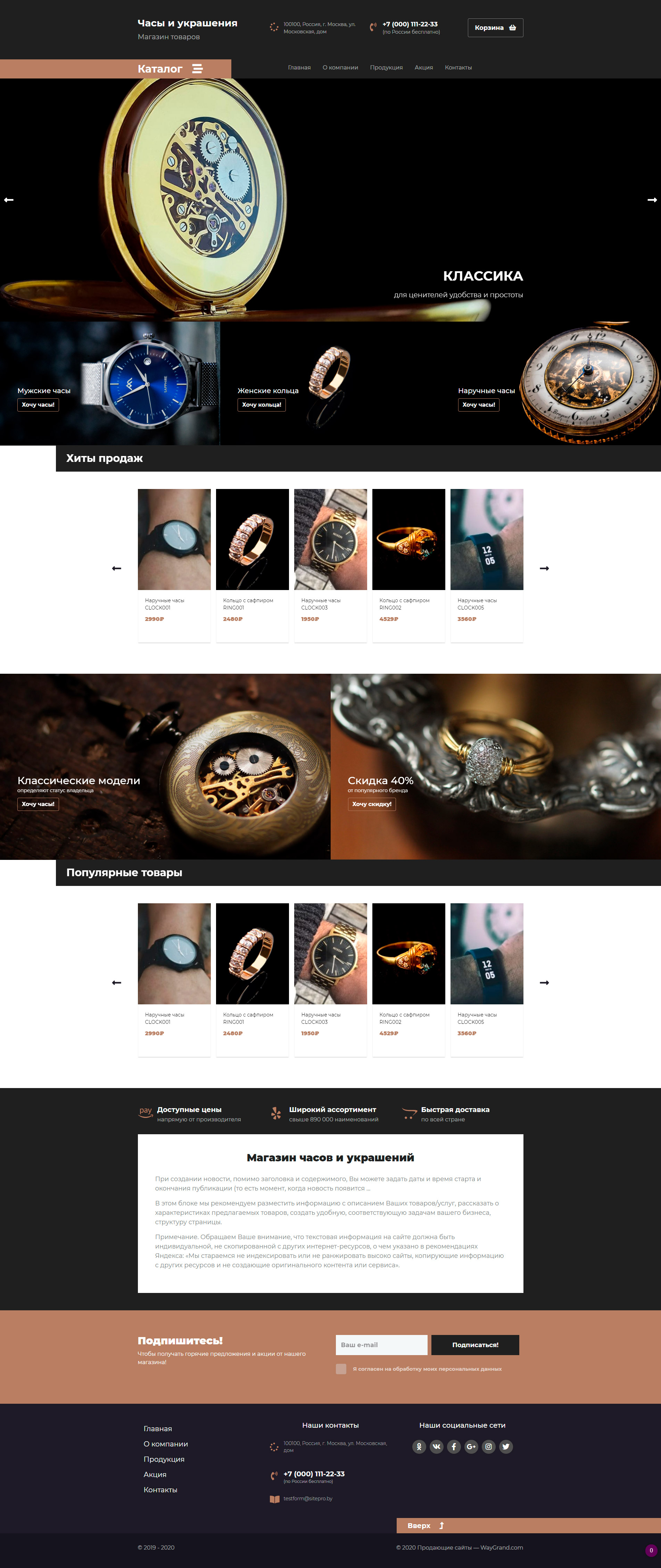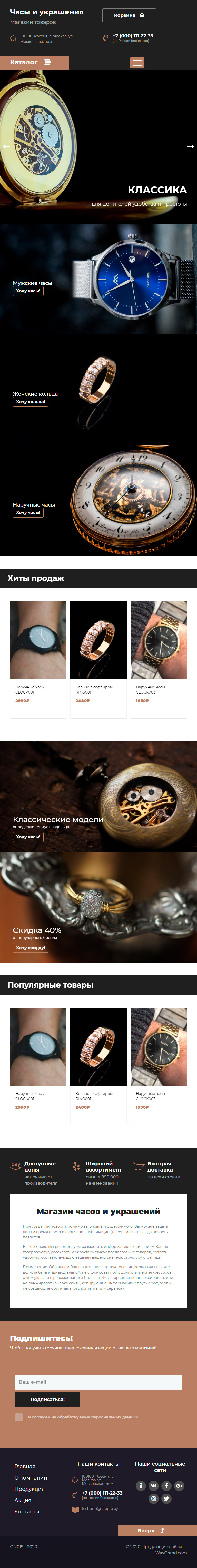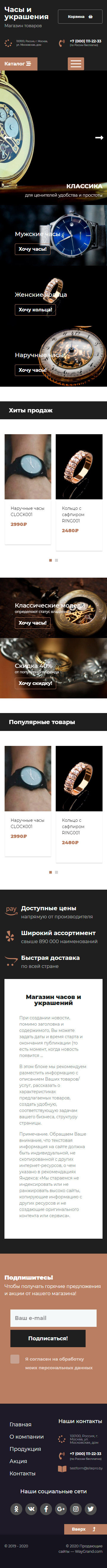Закажите готовый продающий сайт лендинг #2437201 в Челябинске за 1-3 дня «под ключ»: свёрстан, отрисован и готов к рекламе. Тематика шаблона «Часы и украшения».