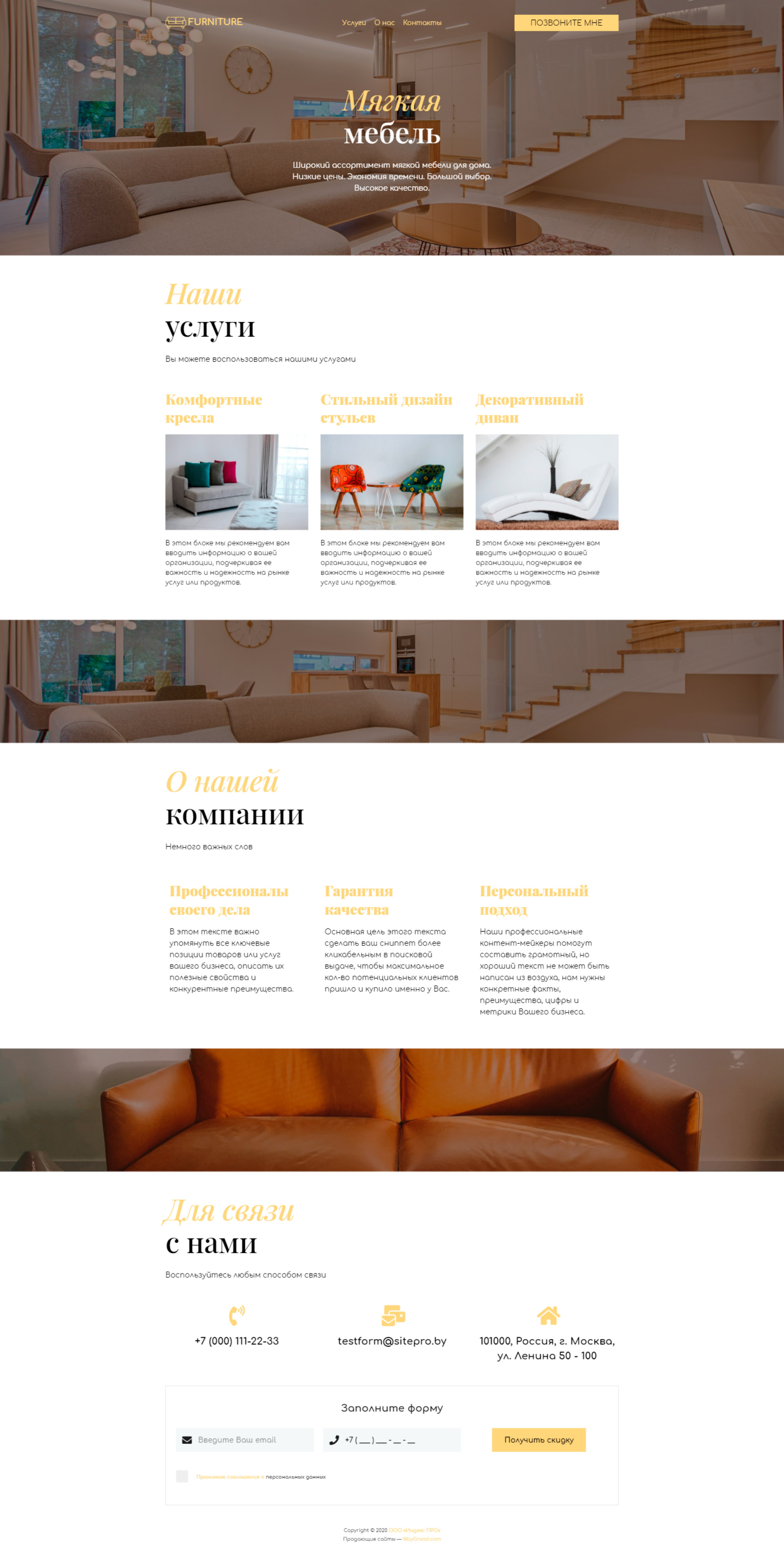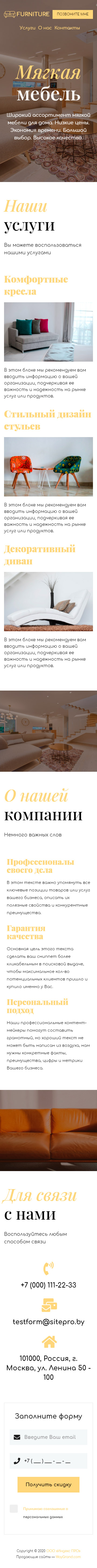 Закажите готовый продающий сайт визитка #0919101 в Челябинске за 5-7 дня «под ключ»: свёрстан, отрисован и готов к рекламе. Тематика шаблона «Мягкая мебель».