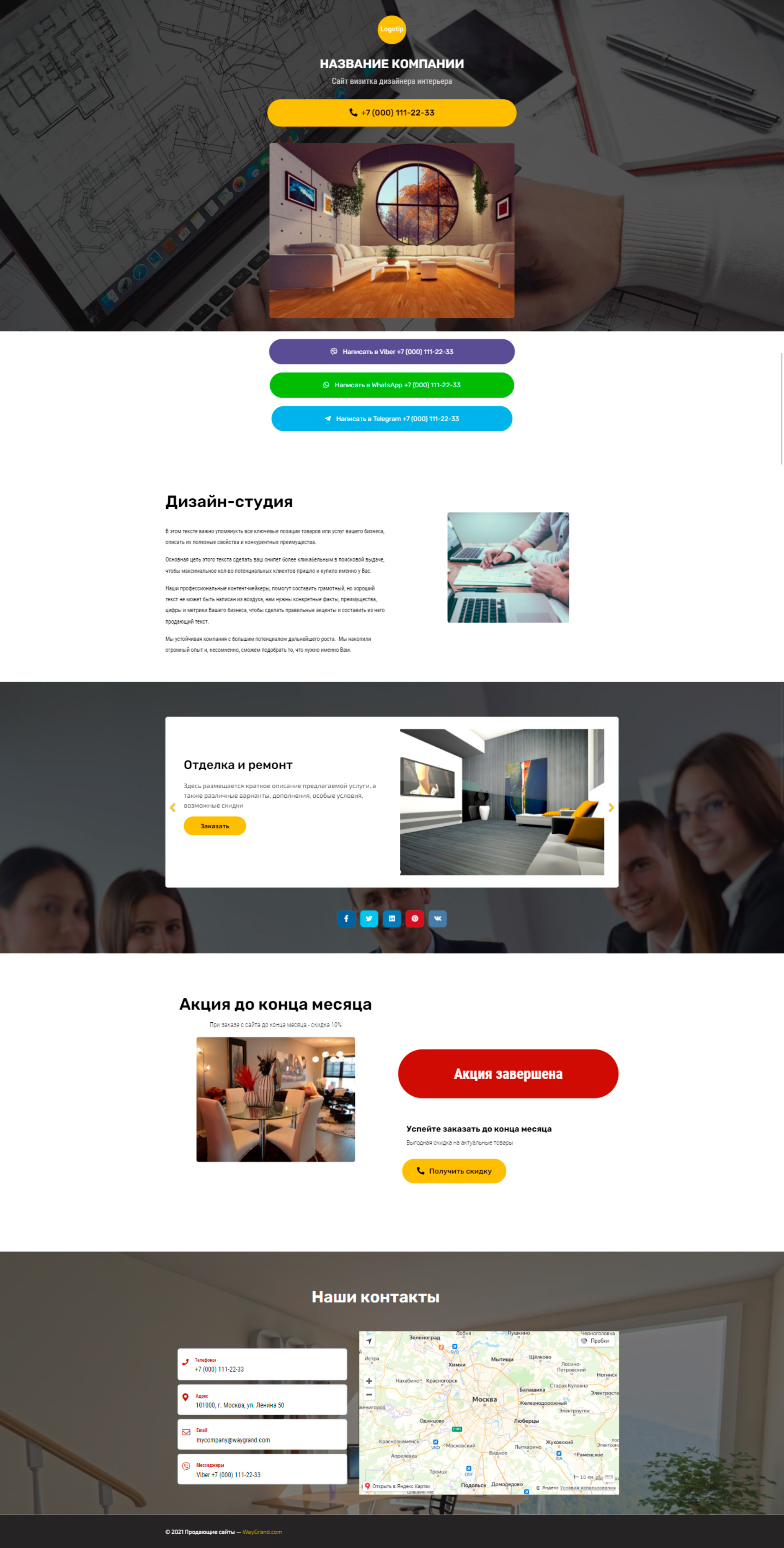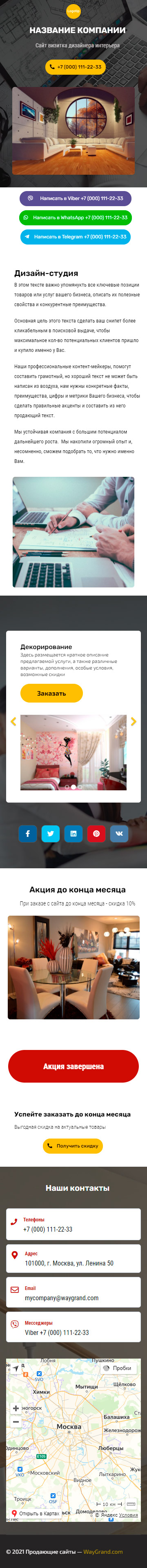 Закажите готовый продающий сайт визитка #2124101 в Челябинске за 5-7 дня «под ключ»: свёрстан, отрисован и готов к рекламе. Тематика шаблона «Дизайн интерьеров».