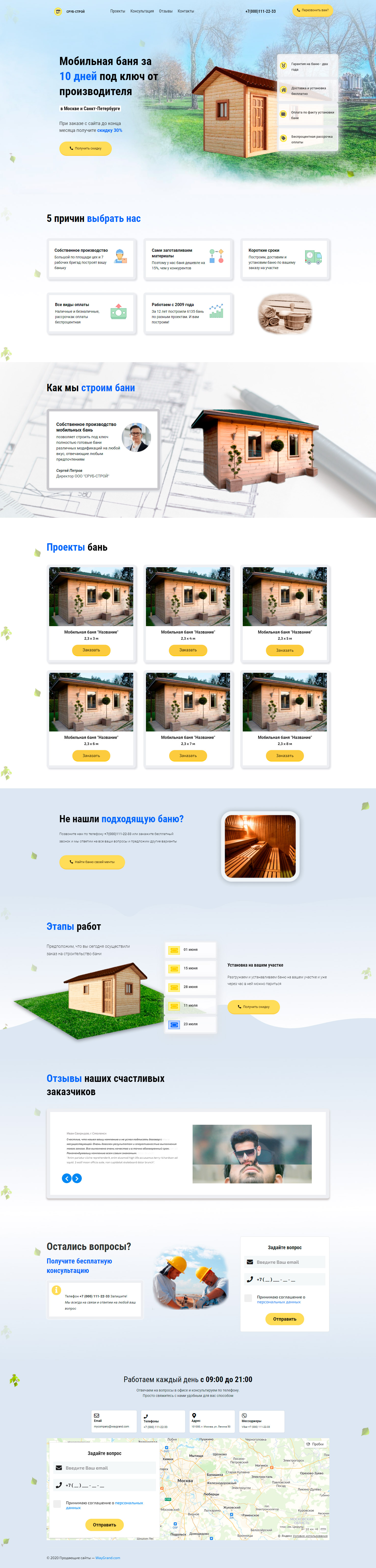 Закажите готовый продающий сайт лендинг #2172203 в Челябинске за 1-3 дня «под ключ»: свёрстан, отрисован и готов к рекламе. Тематика шаблона «Мобильная баня».