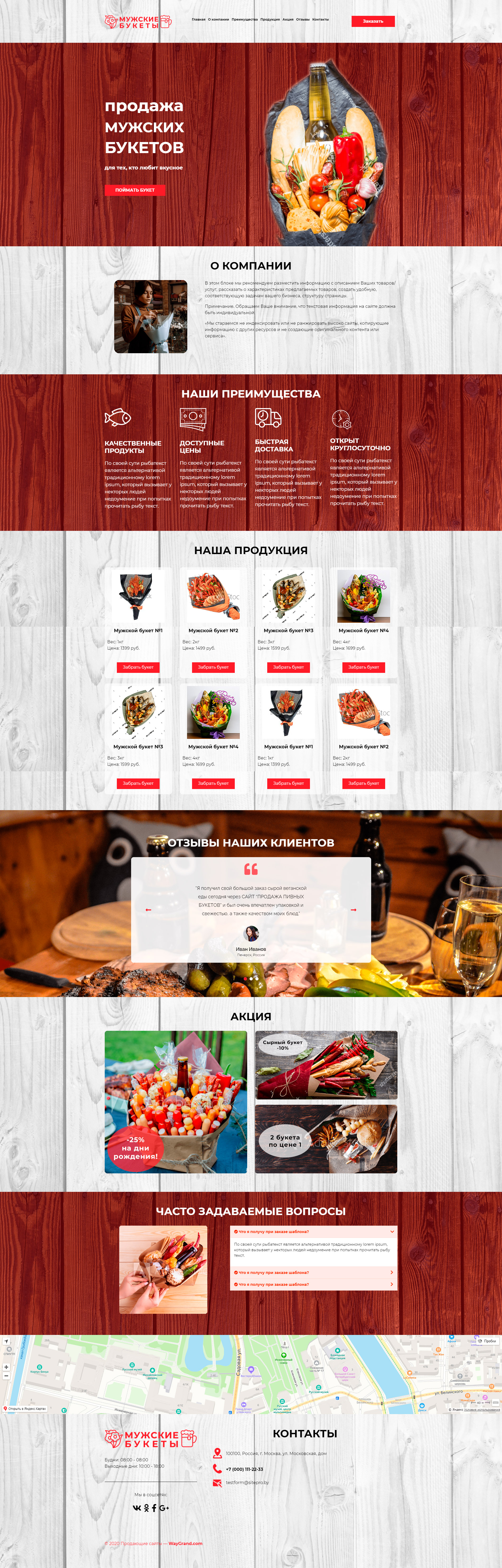 Закажите готовый продающий сайт лендинг #2404204 в Челябинске за 1-3 дня «под ключ»: свёрстан, отрисован и готов к рекламе. Тематика шаблона «Мужские букеты».
