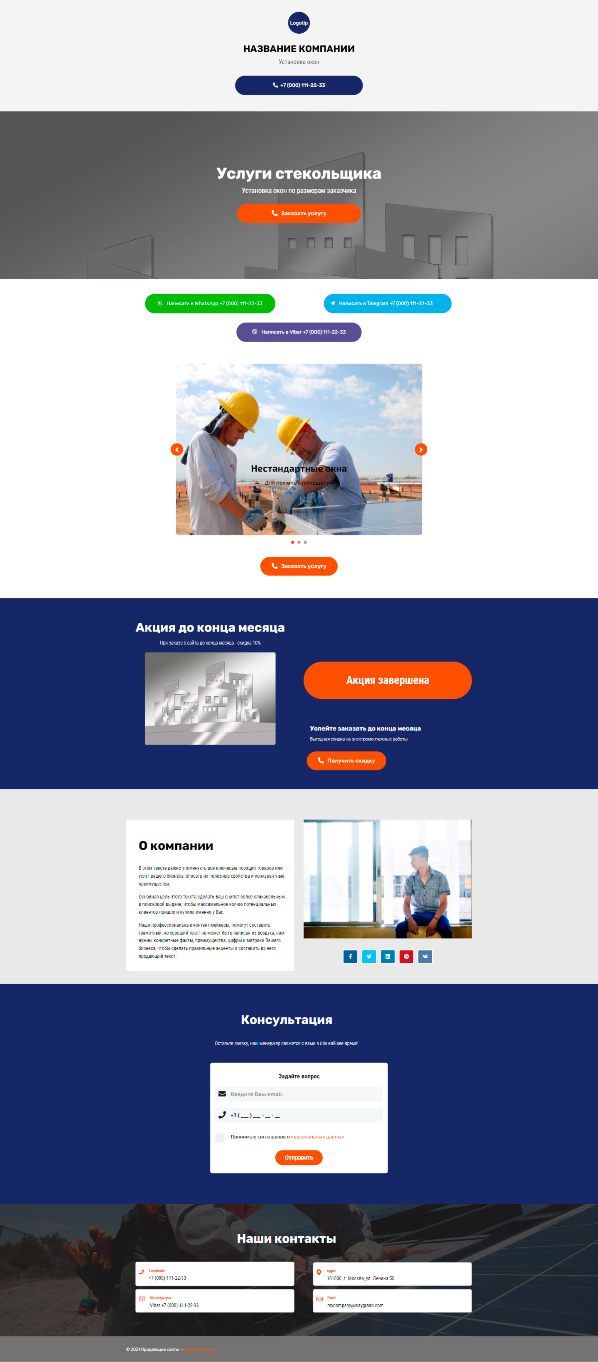 Закажите готовый продающий сайт визитка #2138101 в Челябинске за 5-7 дня «под ключ»: свёрстан, отрисован и готов к рекламе. Тематика шаблона «Установка окон».