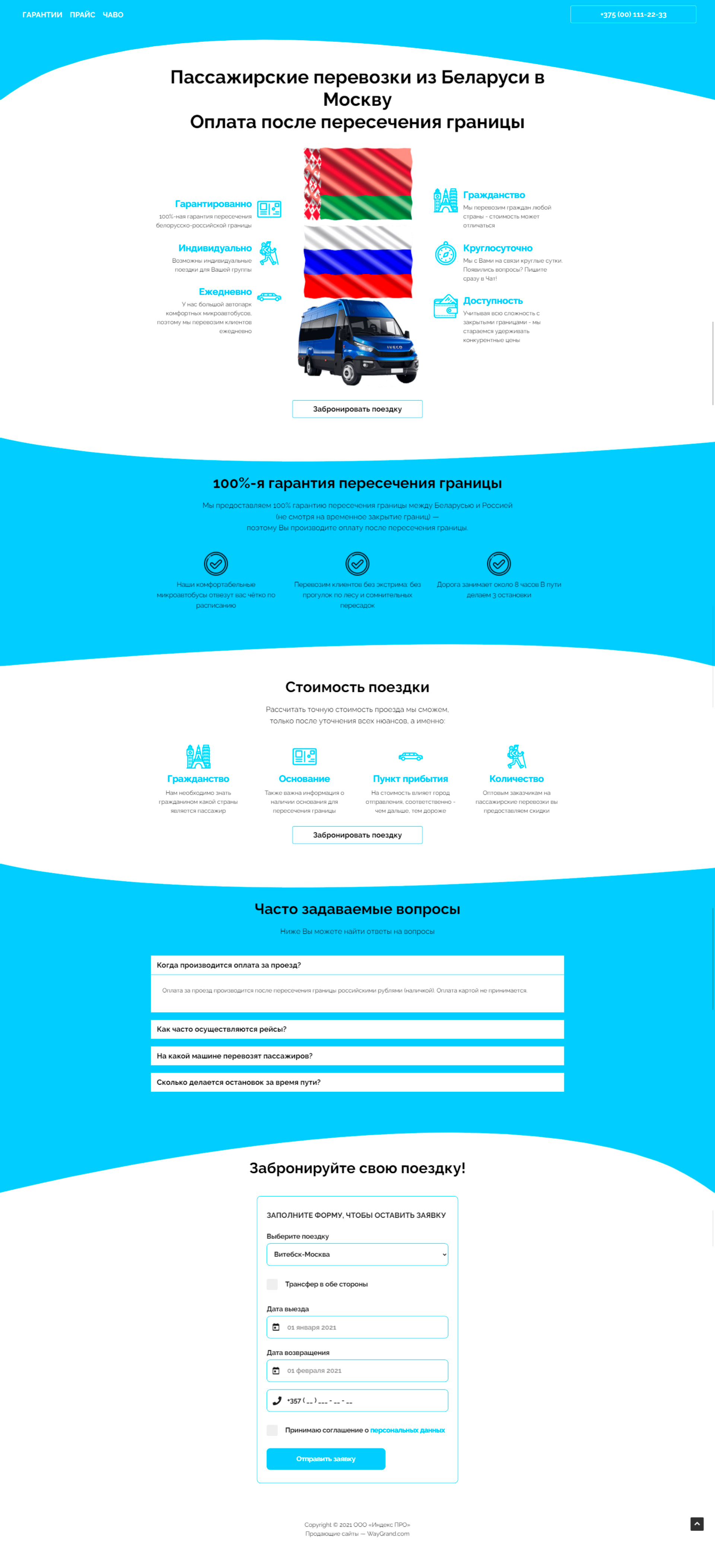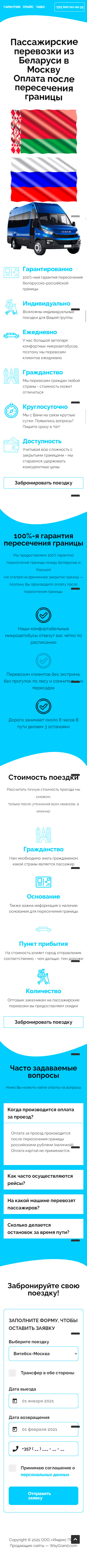 Закажите готовый продающий сайт лендинг #2528204 в Челябинске за 1-3 дня «под ключ»: свёрстан, отрисован и готов к рекламе. Тематика шаблона «Пассажирские перевозки из Беларуси в Москву».