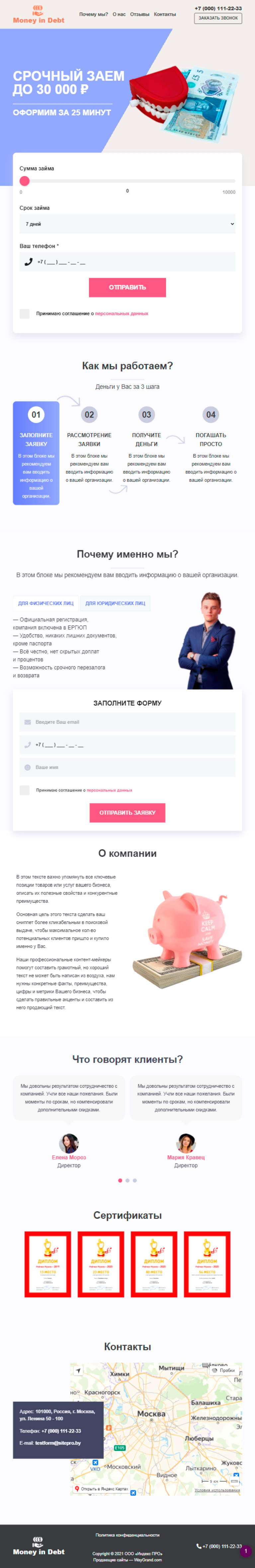 Закажите готовый продающий сайт лендинг #2825202 в Челябинске за 1-3 дня «под ключ»: свёрстан, отрисован и готов к рекламе. Тематика шаблона «Деньги в долг».