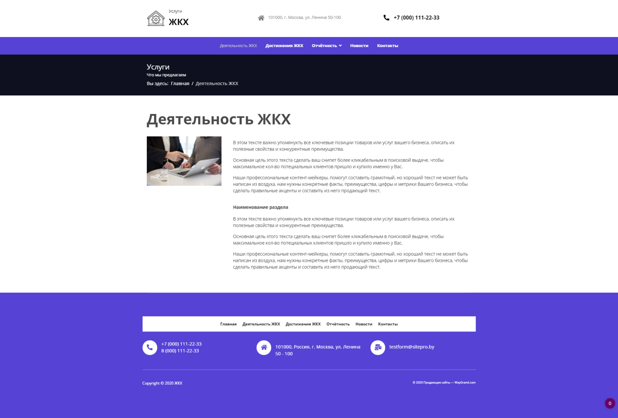 <p>Закажите готовый продающий сайт визитка #0612301 в Челябинске за 5-7 дня «под ключ»: свёрстан, отрисован и готов к рекламе. Тематика шаблона «ЖКХ».</p>