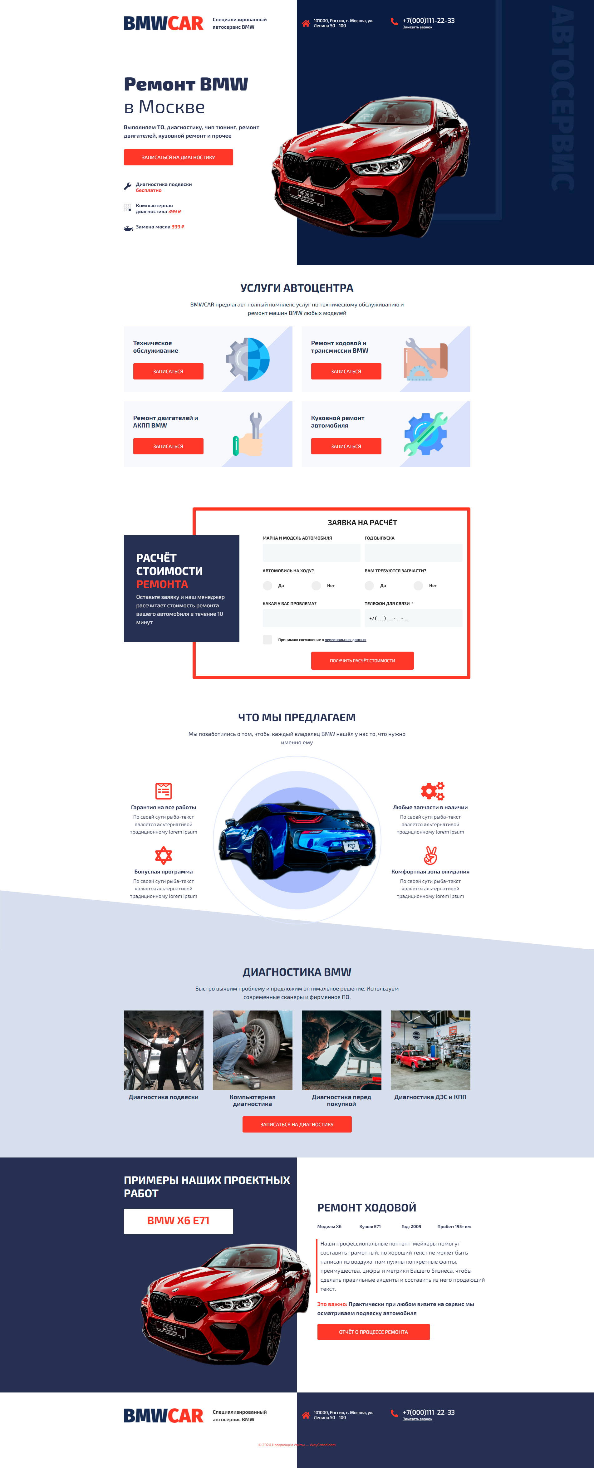 Закажите готовый продающий сайт лендинг #0210202 в Челябинске за 1-3 дня «под ключ» по выгодным ценам на WayGrand: свёрстан, отрисован и готов к рекламе. Тематика шаблона «Ремонт BMW».