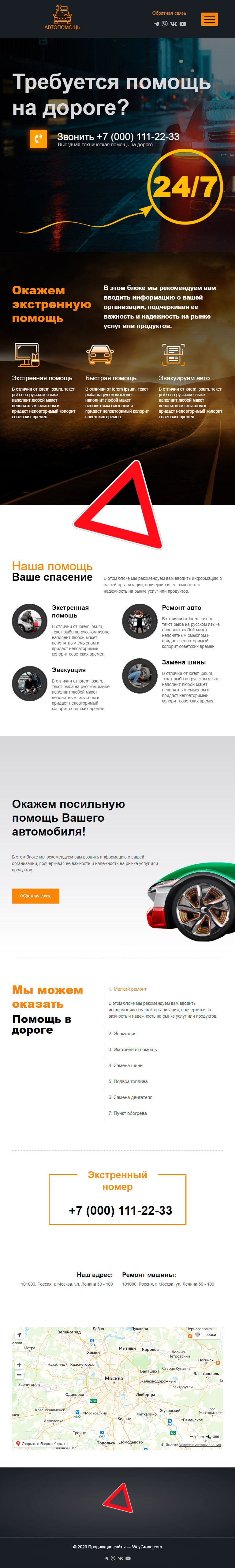 Готовый продающий сайт лендинг #0218201 в Челябинске за 1-3 дня «под ключ» по доступным ценам на Waygrand: свёрстан, отрисован и готов к рекламе. Тематика шаблона «Выездная техническая помощь».