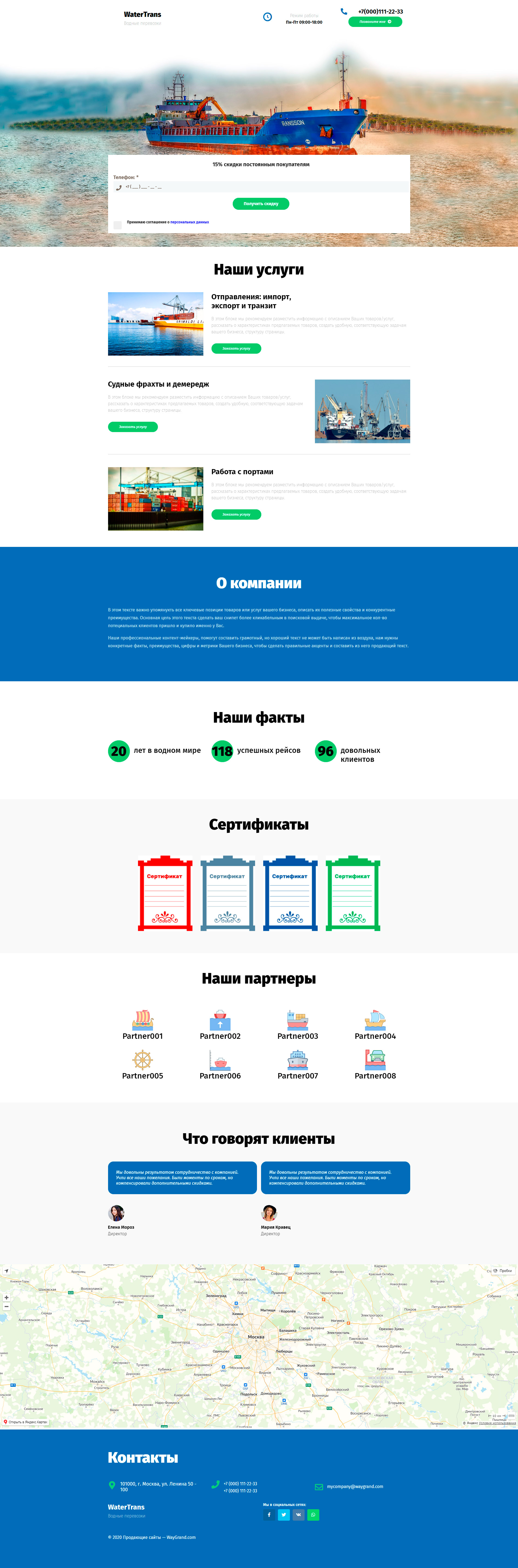 Закажите готовый продающий сайт лендинг #1908201 в Челябинске за 1-3 дня «под ключ»: свёрстан, отрисован и готов к рекламе. Тематика шаблона «Морские перевозки».