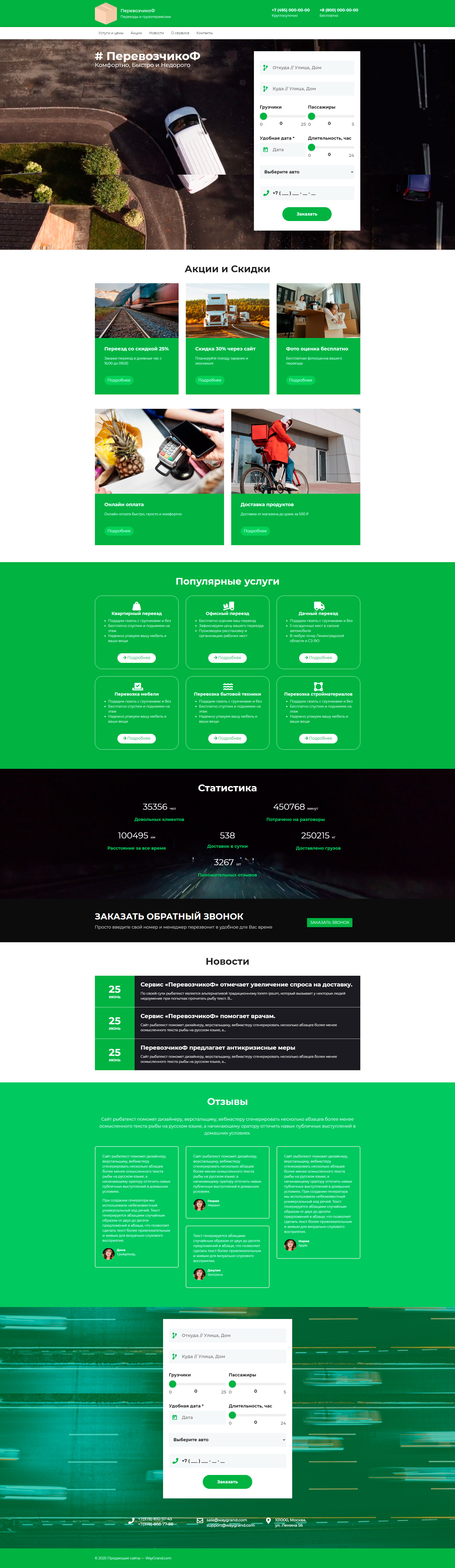 Закажите готовый продающий сайт лендинг #2515201 в Челябинске за 1-3 дня «под ключ»: свёрстан, отрисован и готов к рекламе. Тематика шаблона «Перевозчики».