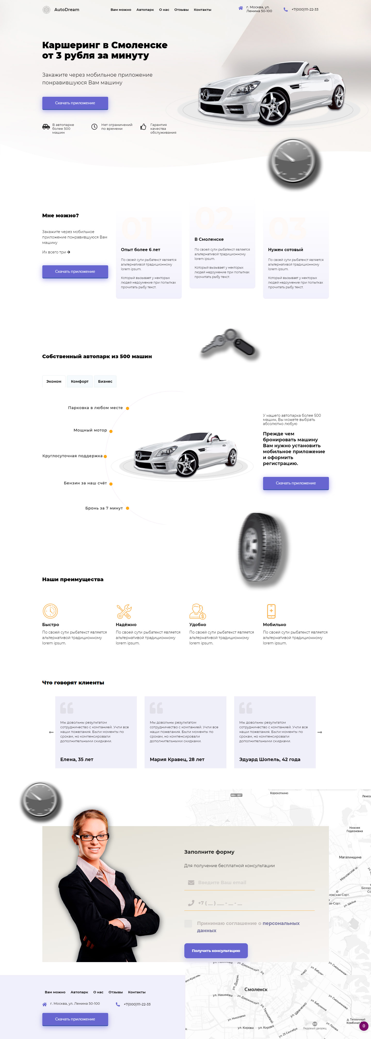 Закажите готовый продающий сайт лендинг #2545202 в Челябинске за 1-3 дня «под ключ»: свёрстан, отрисован и готов к рекламе. Тематика шаблона «Каршеринг».