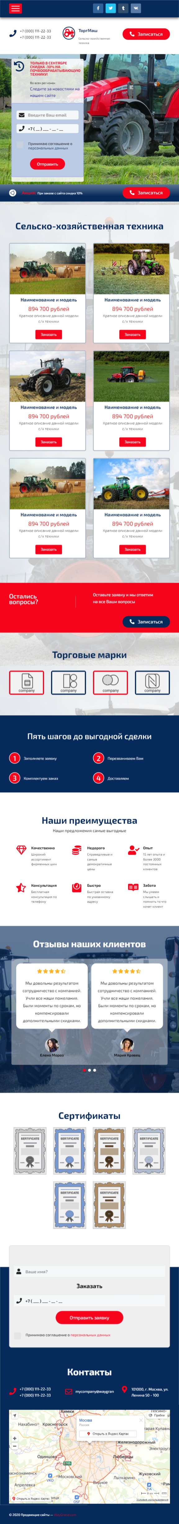 Закажите готовый продающий сайт лендинг #2553202 в Челябинске за 1-3 дня «под ключ»: свёрстан, отрисован и готов к рекламе. Тематика шаблона «Сельско-хозяйственная техника».