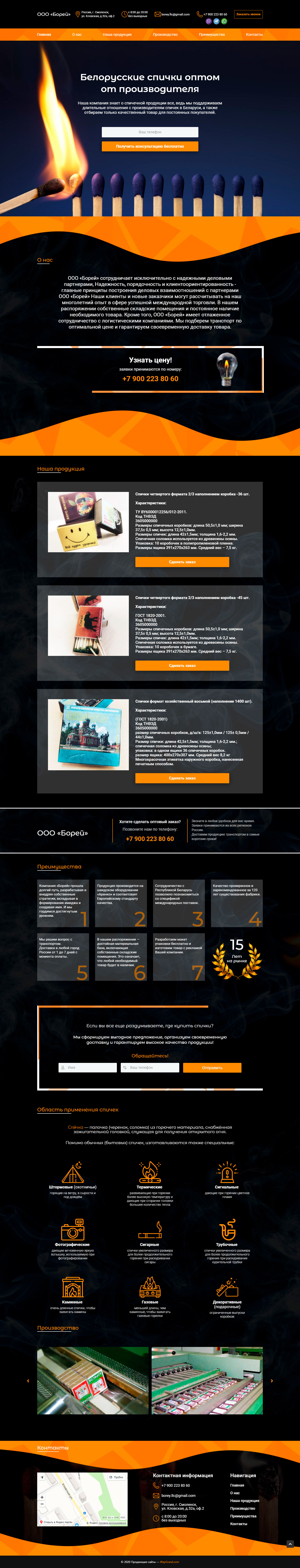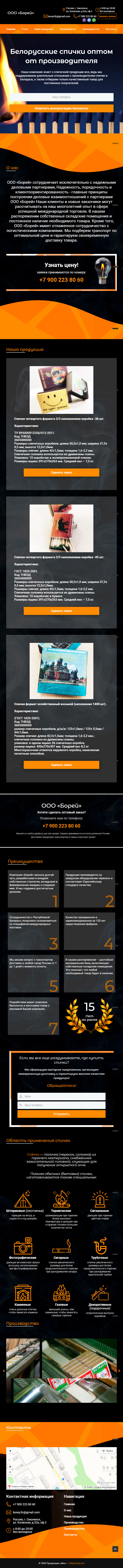 Закажите готовый продающий сайт лендинг #115 в Челябинске за 1-3 дня «под ключ»: свёрстан, отрисован и готов к рекламе. Тематика шаблона «Белорусские спички оптом от производителя».