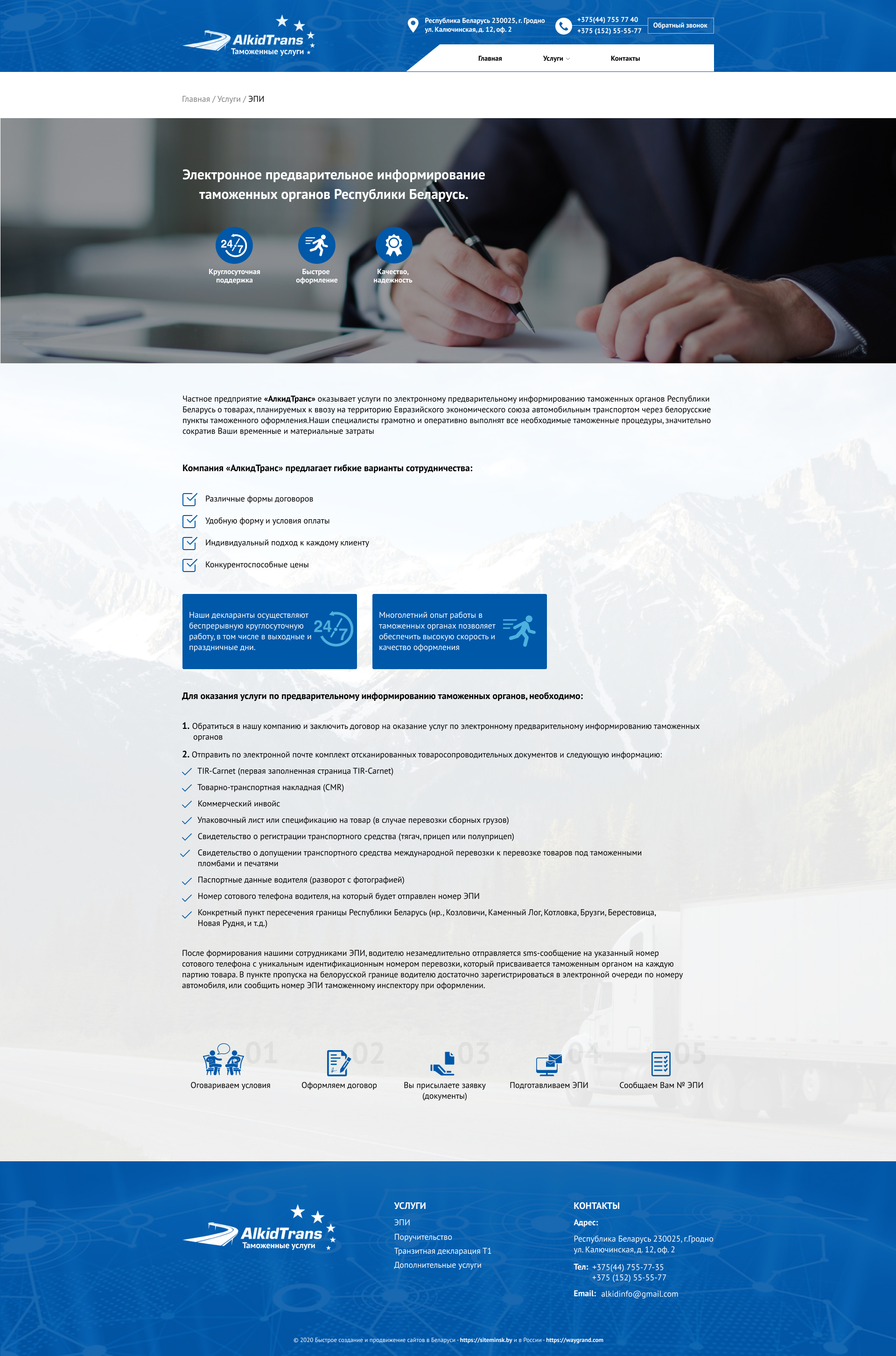 Закажите готовый продающий сайт визитка #234 в Челябинске за 5-7 дня «под ключ»: свёрстан, отрисован и готов к рекламе. Тематика шаблона «Таможенные услуги».