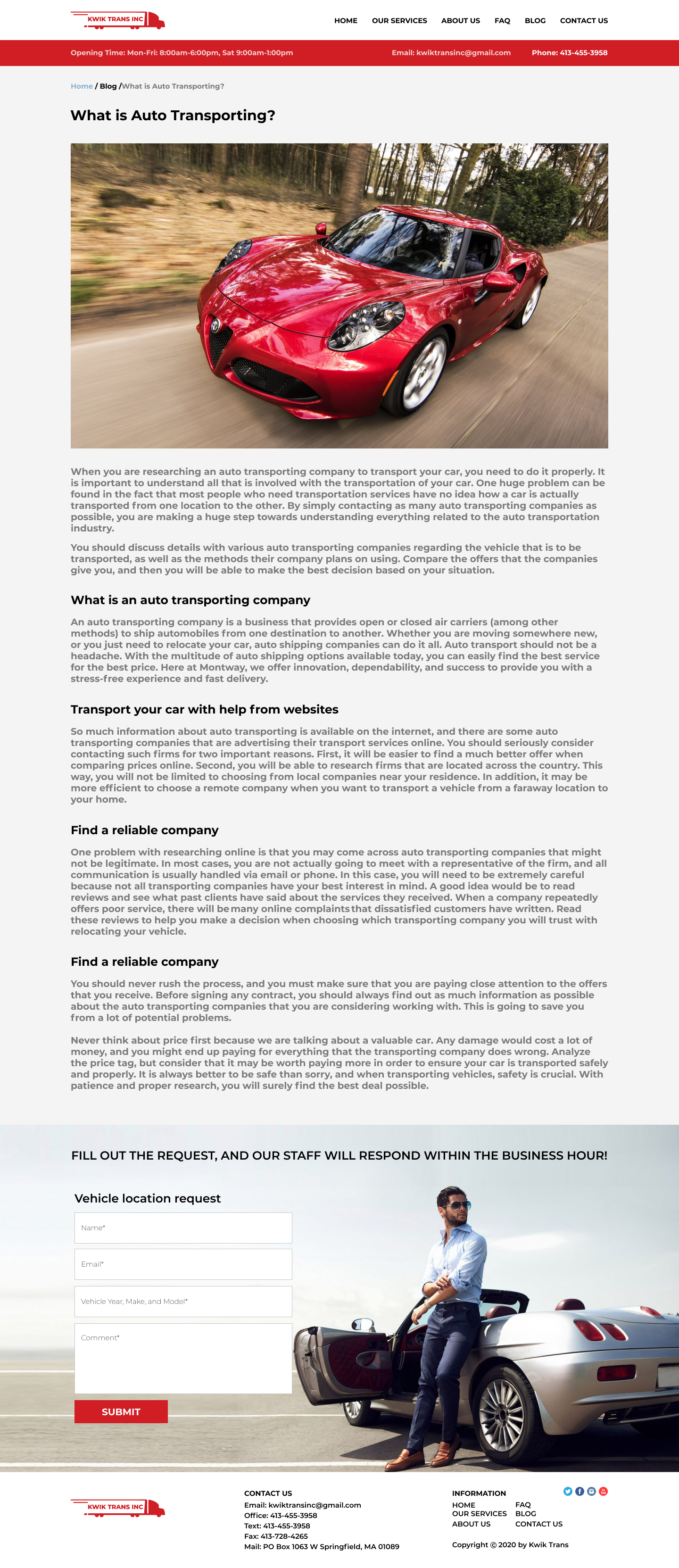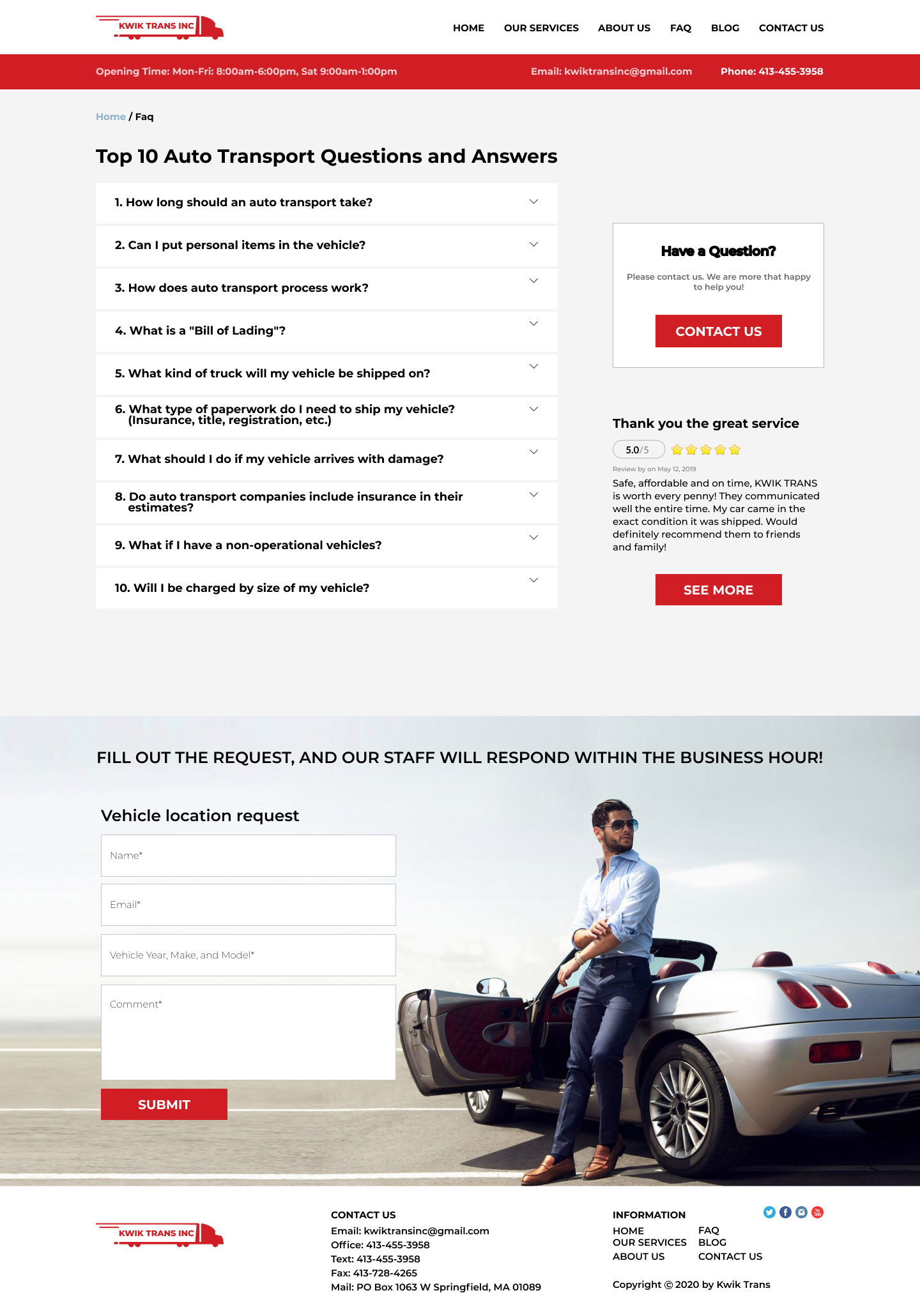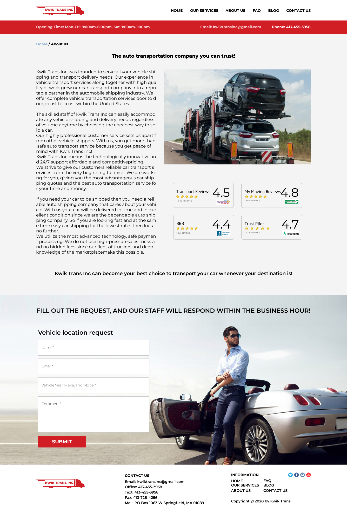 Закажите готовый продающий сайт визитка #223 в Челябинске за 5-7 дня «под ключ»: свёрстан, отрисован и готов к рекламе. Тематика шаблона «Safe & Reliable National Auto Transport».